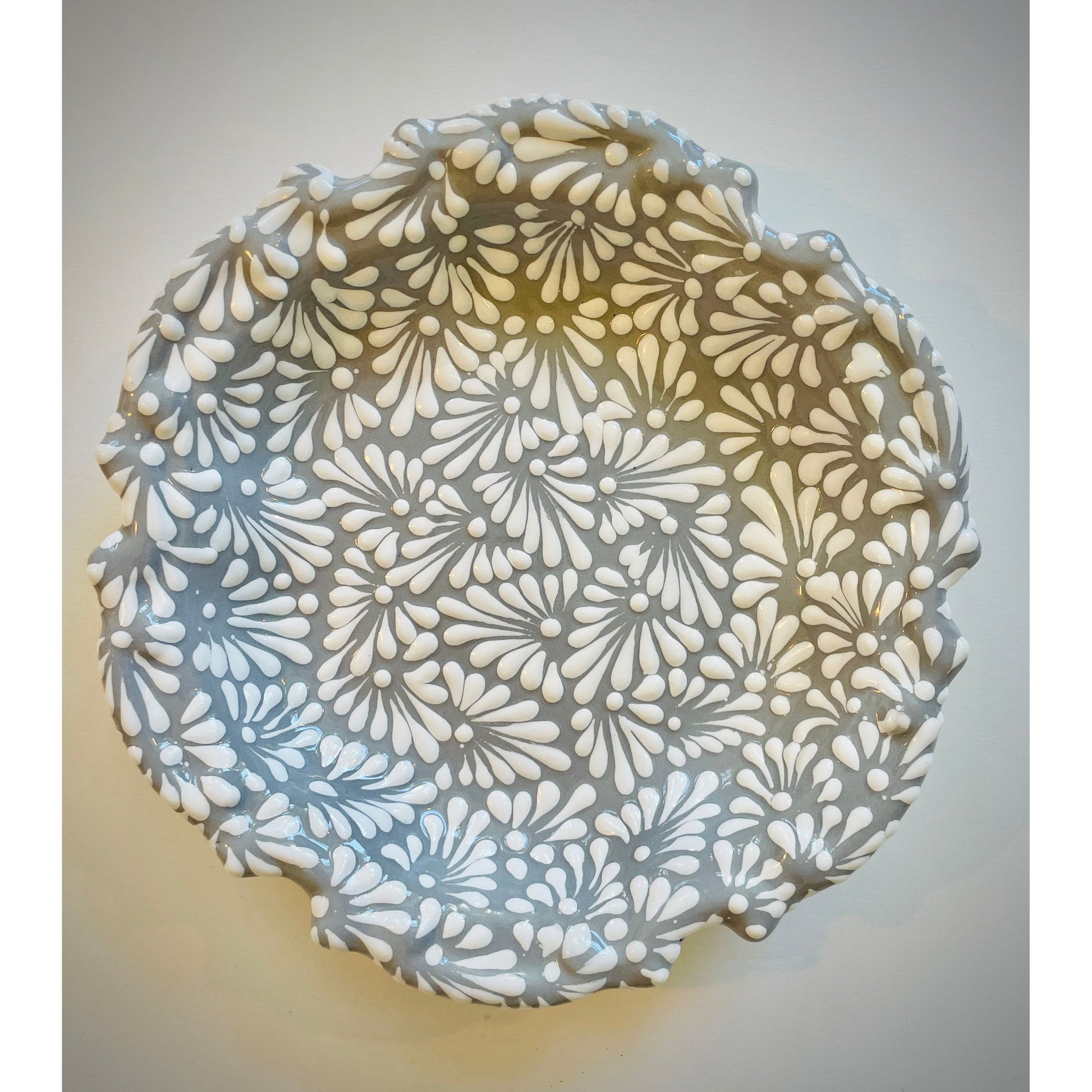 Flor Gris Colonial: Exquisiter, handgefertigter & handbemalter Talavera-Teller